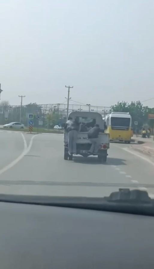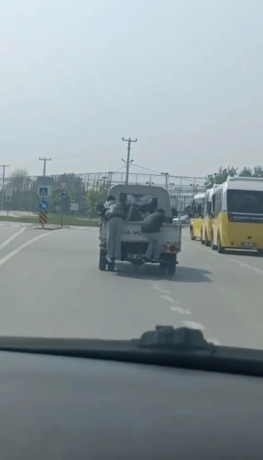 O anları gören diğer sürücüler, kamyonet sürücüsünü korna ile uyarsa da sonuç alamadı.