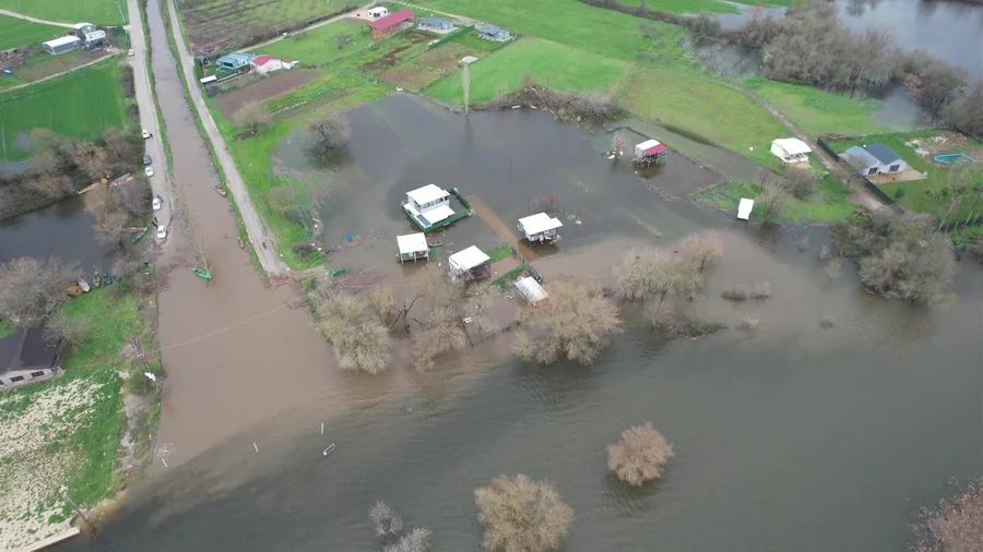 Bursa'da Uluabat Gölü'nün taşmasıyla göle komşu Akçalar Mahallesi'nde onlarca tiny house ve hobi evi sular altında kaldı. Göl havzasının ne denli geniş bir alan yayıldığı havadan gözler önüne serildi.