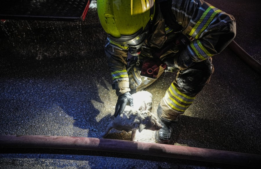 Yangın sırasında bina içerisinde bulunan bir köpek itfaiye ekipleri tarafından kurtarıldı.