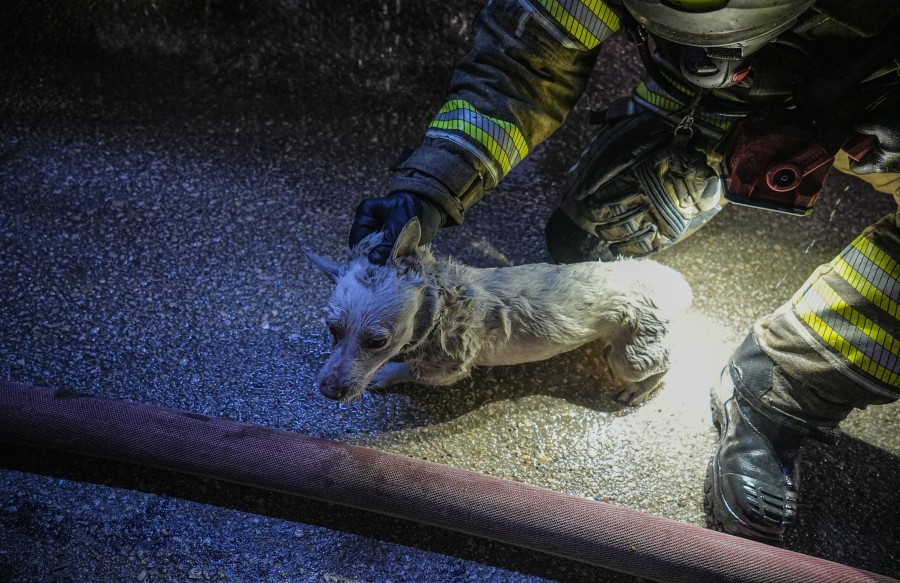 Bursa'nın Nilüfer ilçesinde bir binada çıkan yangından etkilenen köpek itfaiye ekipleri tarafından kurtarıldı.