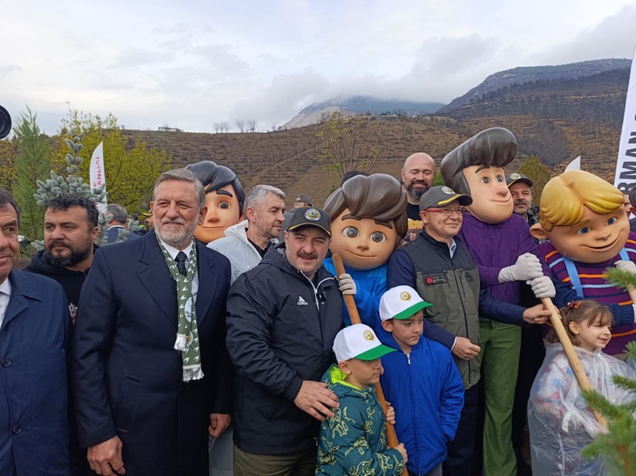 "Şahidimiz toprak, imzamız fidan, sevdamız Yeşil Vatan" sloganıyla düzenlenecek etkinlikte, Bursa genelinde 12 ilçede 90,7 hektar alanda toplam 96 bin fidan toprakla buluştu. 2025 yılı fidan dikim töreni, Gürsu ilçesi Karahıdır Mahallesi'nde geçtiğimiz temmuz ayında çıkan orman yangınında zarar gören bölgede gerçekleştirildi. 11 Kasım Salı günü saat 11.11'de başlayan törene Bursa Valisi Erol Ayyıldız, Türkiye Büyük Millet Meclisi (TBMM) Sanayi, Ticaret, Enerji, Tabii Kaynaklar, Bilgi ve İletişim Teknolojileri Komisyonu Başkanı ve AK Parti Bursa Milletvekili Mustafa Varank, AK Parti Bursa İl Başkanı Davut Gürkan, Gürsu Belediye Başkanı Mustafa Işık, Yıldırım Belediye Başkanı Oktay Yılmaz, Bursa Ticaret ve Sanayi Odası (BTSO) Yönetim Kurulu Başkanı İbrahim Burkay, Bursa Orman Bölge Müdürü Erdal Şahan, yangın şehitlerinin aileleri, kamu kurum ve kuruluşları, yerel yönetimler, sivil toplum kuruluşları, öğrenciler ve vatandaşlar katıldı. Törenin ardından katılımcılarla birlikte yangından etkilenen alana 30 bin fidan dikimi gerçekleştirildi.