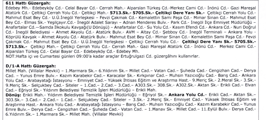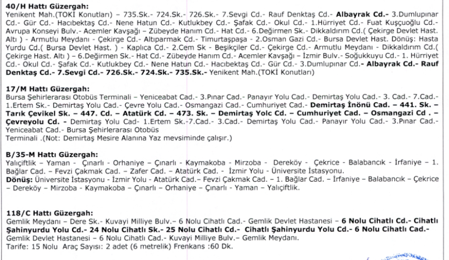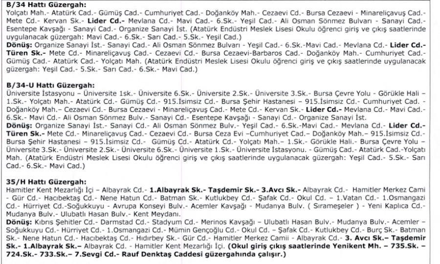 ÇOK SAYIDA HATTA GÜZERGAH DEĞİŞİKLİĞİ