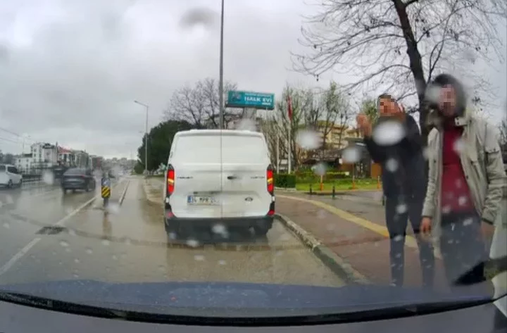 Tartışmanın büyümesi üzerine minibüs sürücüsü, otomobili bir süre takip ederek durdurdu. Minibüsten inen 3 kişi, otomobil sürücüsüne hakaret ederek darbetmeye çalıştı.