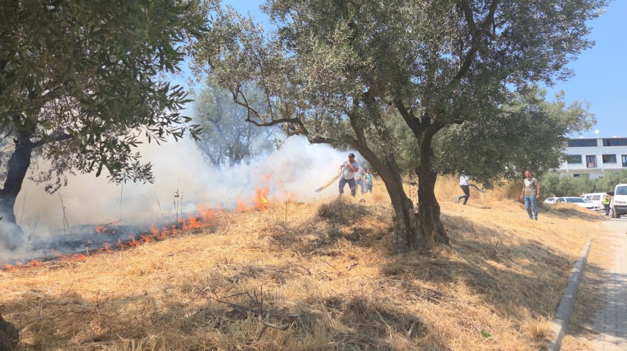 Olay yerine kısa sürede gelen itfaiye ekipleri, yangını evlere sıçramadan kontrol altına aldı. Yangında toplam 20 zeytin ağacı zarar gördü. Yangını çıkardığı ileri sürülen iki çocuğun, alevlerin büyümesinin ardından bölgeden kaçtığı öğrenildi.