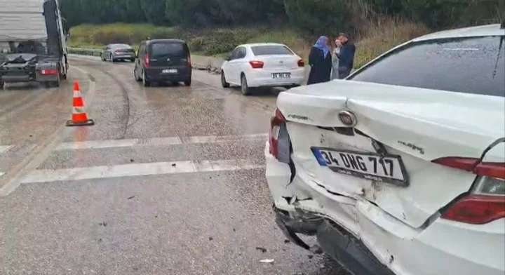Bursa otobanında meydana gelen zincirleme trafik kazasında 4 araç birbirine girdi.
