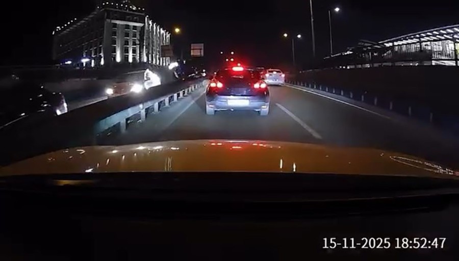 Kazaya şahit olan sürücü ve yanındakilerin tepkisi kazanın boyutunu gözler önüne serdi. Kazada yaralanan olmazken, trafik bir süre tek şeritten kontrollü olarak sağlandı.