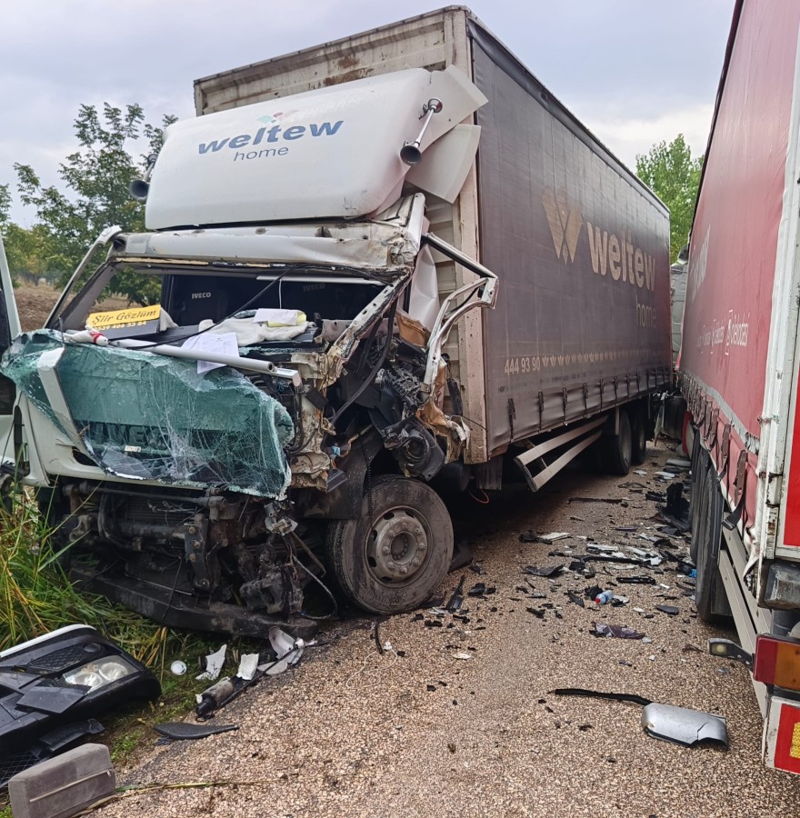 Bursa'nın İnegöl ilçesinde meydana gelen kazada 2 kamyon kafa kafaya çarpıştı; 1 sürücü yaralandı.