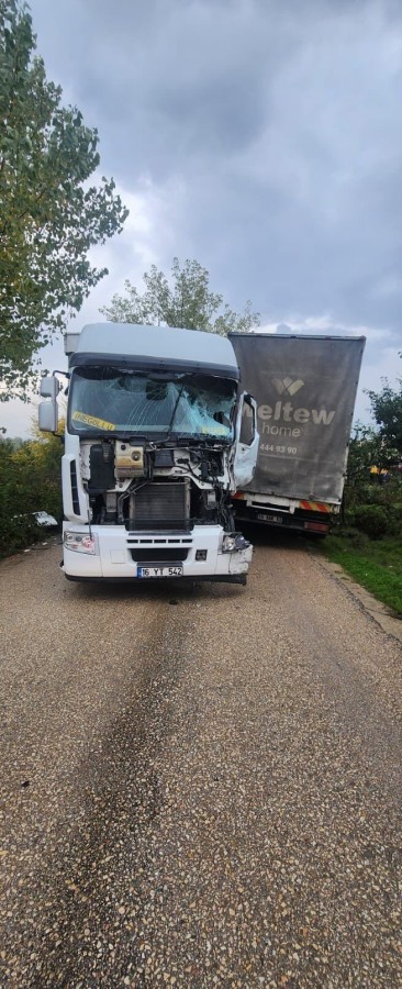 Edinilen bilgiye göre, kaza saat 09.30 İnegöl'ün Yeniceköy Mahallesi Ova Yeniceköy Caddesinde meydana geldi. Yol üzerinde seyir halinde olan Recep S.(30) yönetimindeki 16 YT 542 plakalı kamyon ile karşı yönden gelen sürücü Emrullah B.(39) yönetimindeki 16 KAK 52 kamyon daralan yolda kafa kafaya çarpıştı.