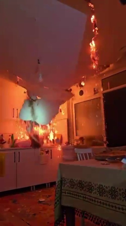 Olayda can kaybı ya da yaralanma yaşanmazken, dairede maddi hasar meydana geldi.