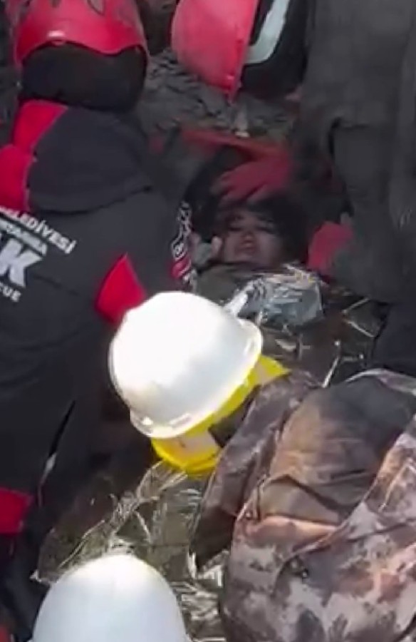 Kahramanmaraş'ın Elbistan ilçesinde yıkılan 5 katlı binanın enkazı altında kalan Suriye uyruklu 8 yaşındaki Fatma, ekipler tarafından 104'üncü saatte kurtarıldı.