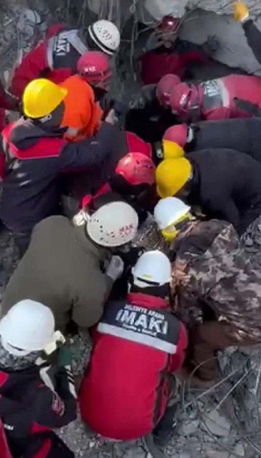 Ekiplerin uyanık kalması için sürekli konuştuğu Fatma, saat 12.30 sıralarında, depremin 104'üncü saatinde enkazdan sağ olarak çıkarıldı.