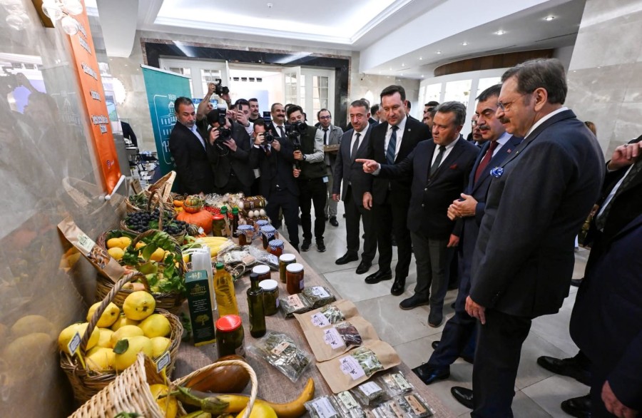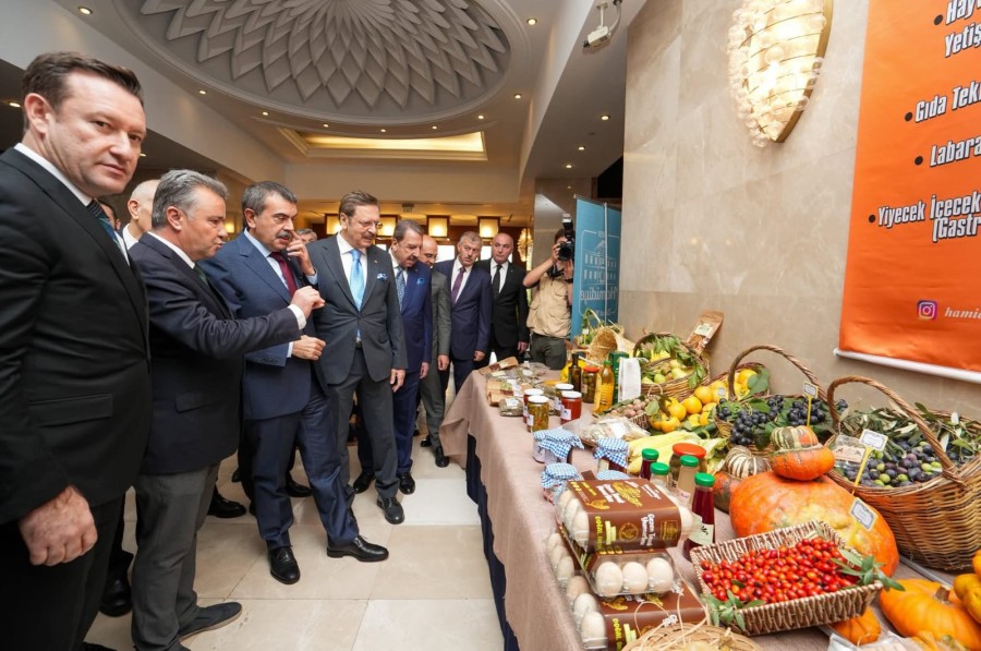 Protokol öncesinde, TOBB Başkanı M. Rifat Hisarcıklıoğlu ile Milli Eğitim Bakanımız Yusuf Tekin, okulumuzun ürettiği tarımsal ürünlerin sergilendiği stantı ziyaret etti.