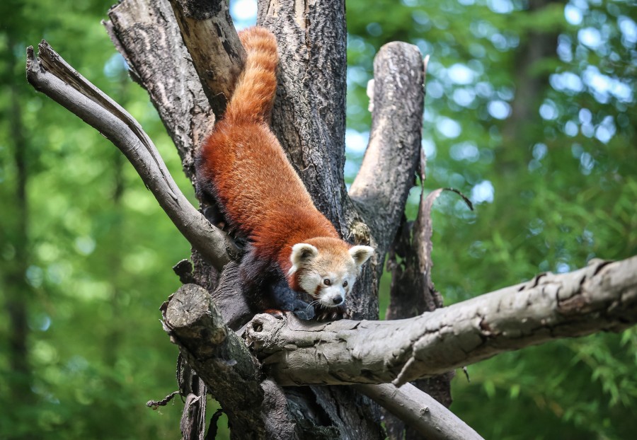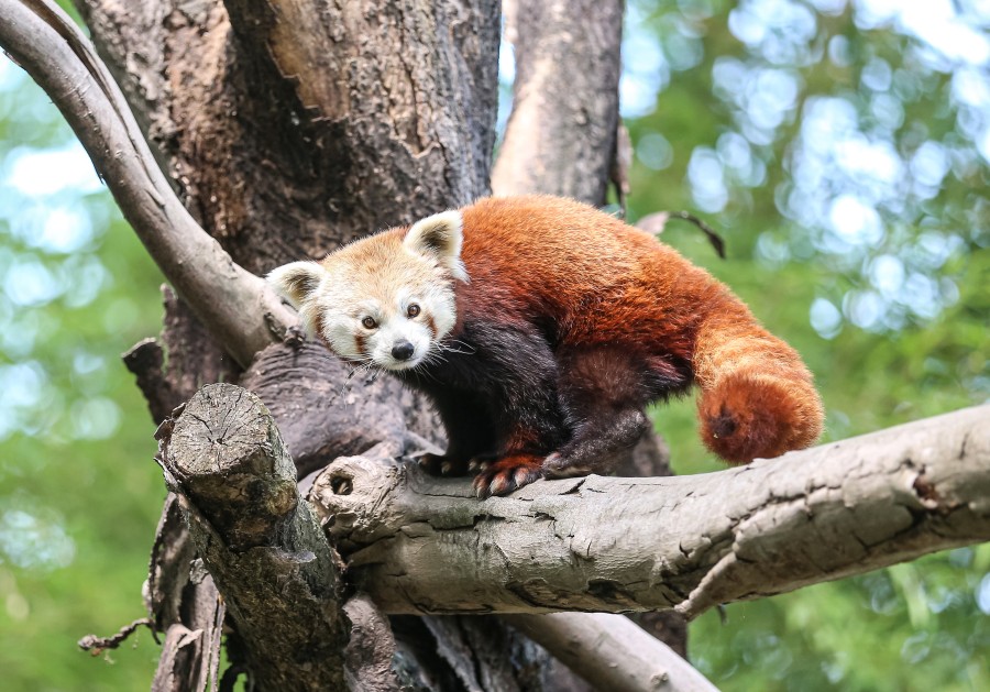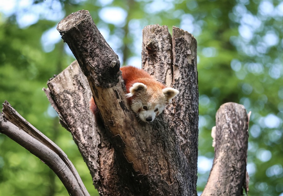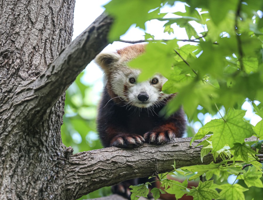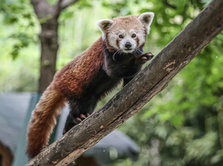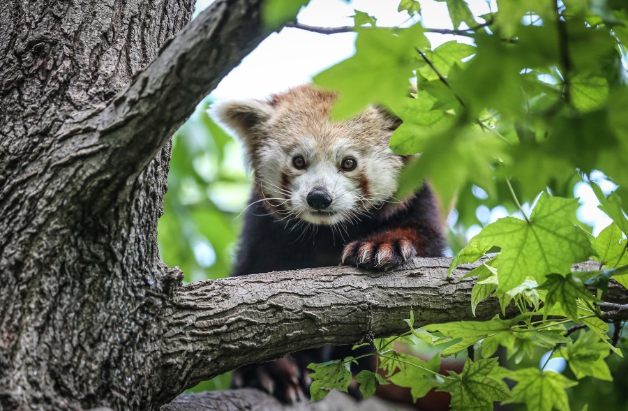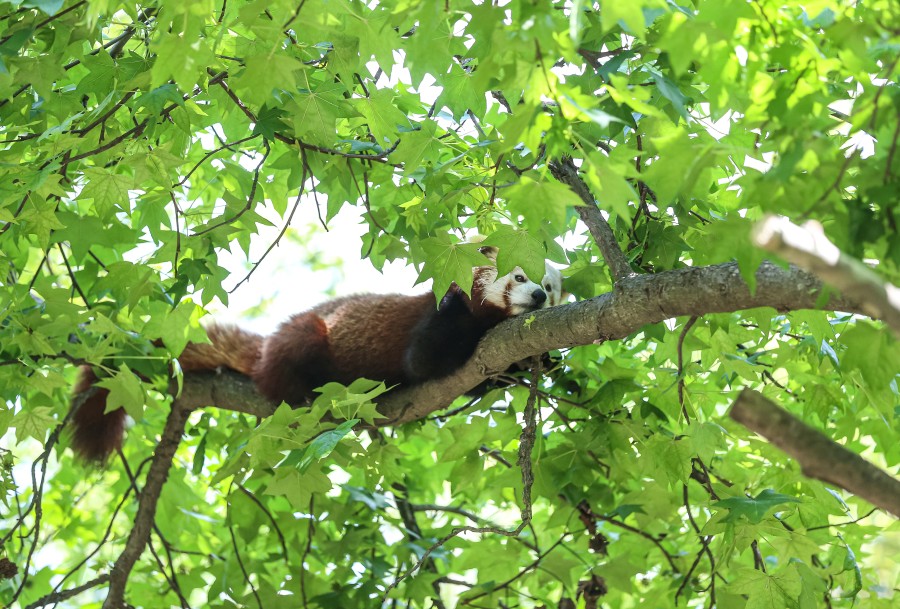 Sabah saatlerinde ağaç dallarındaki yaprakların arasında dolaşıp uyuyan kırmızı pandalar, öğle sıcağında ise barınaktaki klimalı odada serinliyor.