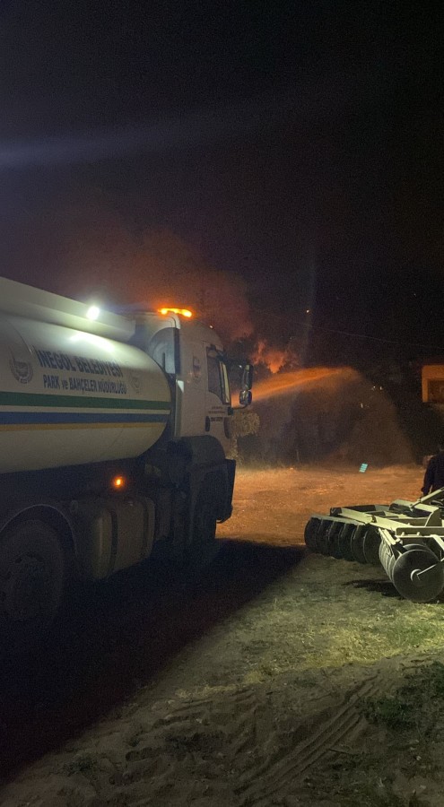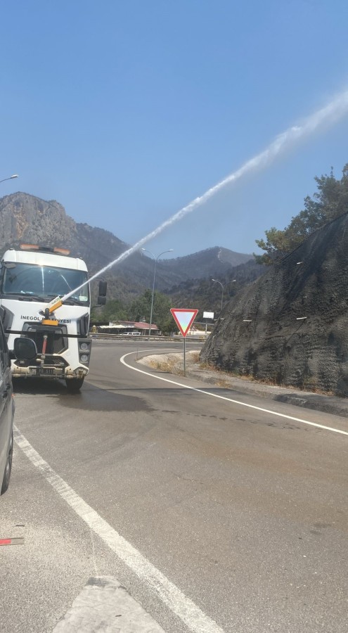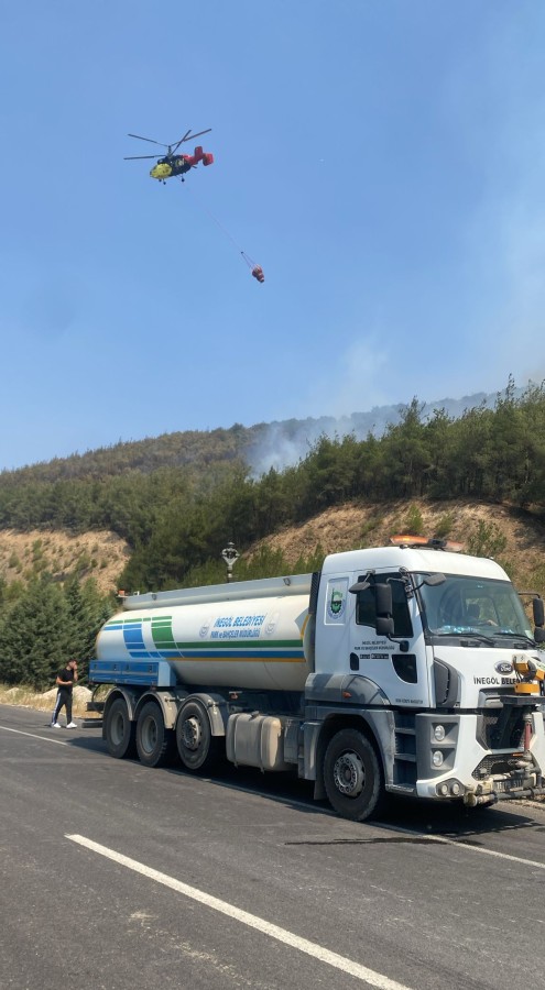 İnegöl Belediye Başkanı Alper Taban'ın talimatıyla hızla organize olan İnegöl Belediyesi ekipleri, yangın bölgesine yönlendirilerek yangın söndürme faaliyetlerine katıldı. Belediyeye ait su tankeri, özellikle ulaşılması zor noktalarda Orman Genel Müdürlüğü ekiplerine destek veriyor. Su taşıma ve soğutma faaliyetlerinde görev alan İnegöl Belediyesi ekipleri, koordineli bir şekilde çalışmalara katkı sunuyor.