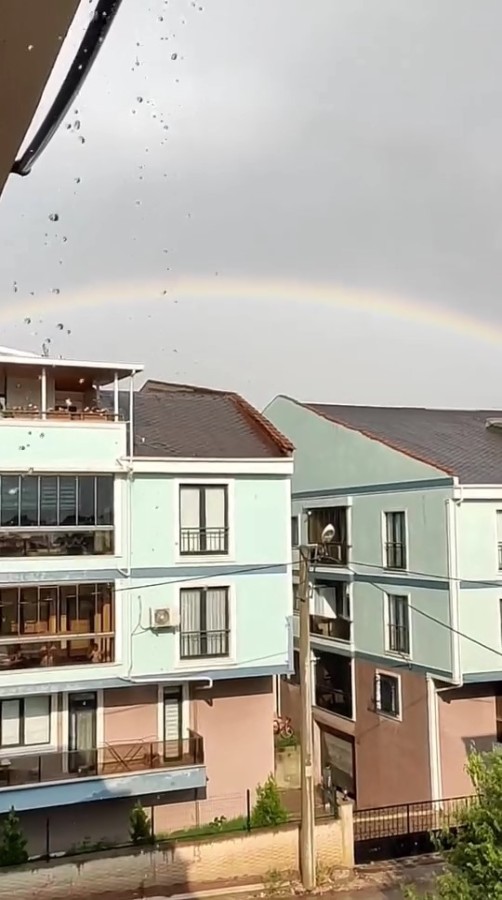 Yağmurun ardından ortaya çıkan güneşle birlikte gökyüzünde gökkuşağı oluştu.