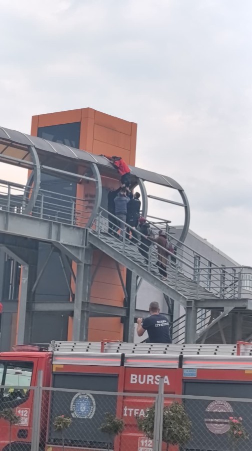 Olay yerine 112, polis ve itfaiye arama kurtarma ekipleri sevk edildi. Polis ekipleri şahsı yarım saat süren ikna çalışması sonucu çıktığı yerden indirdi. İkna çalışmalarını meraklı gözlerle izleyen öğrenciler, üst geçitten adamın indirilmesini sağlayan polis ekiplerini alkışladılar.
