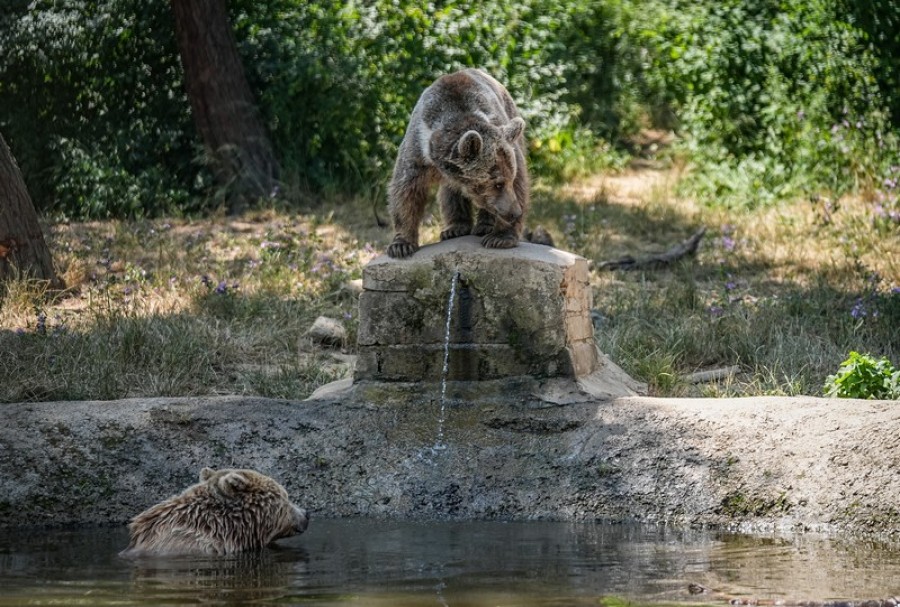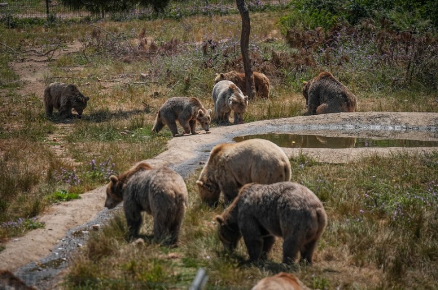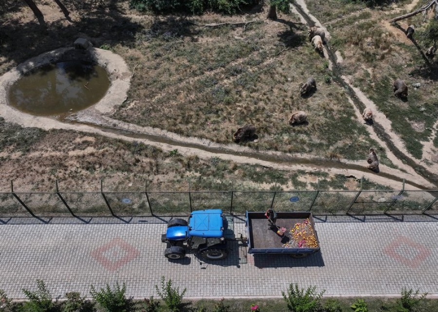 Bursa'nın Karacabey ilçesindeki ayı barınağının sakinleri, sıcak geçen yaz günlerinde yüksek protein ve yüksek kalorili yiyeceklerle besleniyor.
