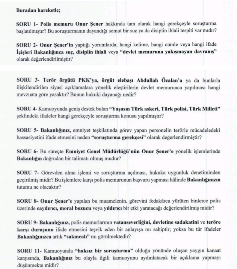 Türkoğlu'nun önergesinde öne çıkan sorular şöyle: