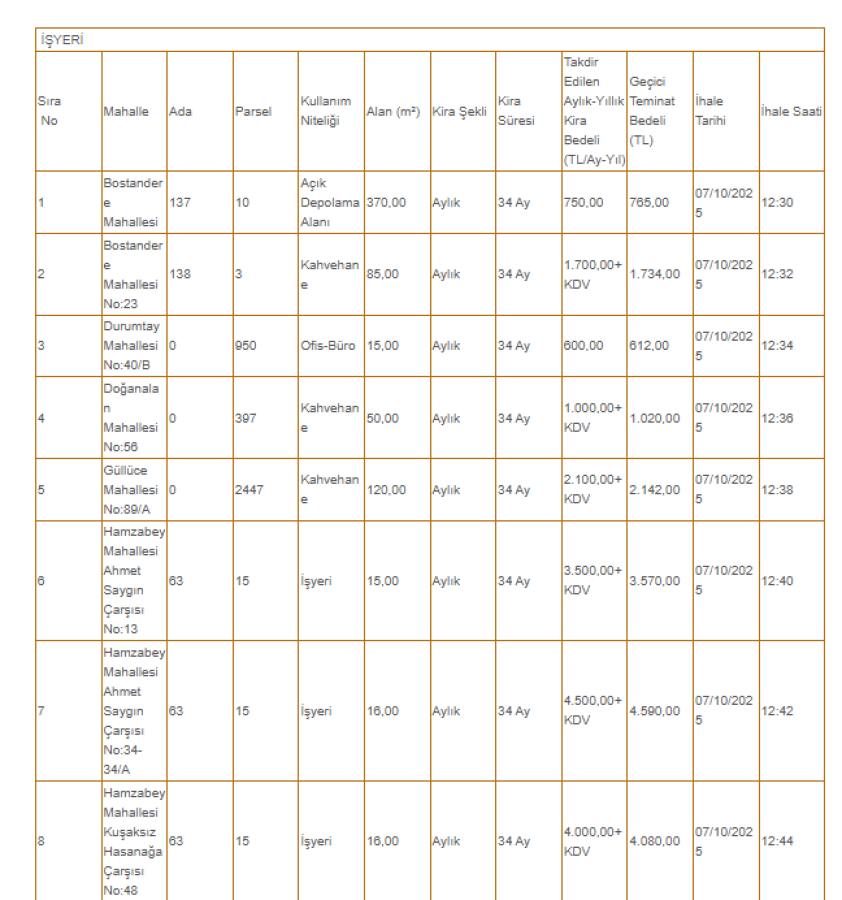 İlangov.com'dan yapılan duyuru metni ve kiralanacak taşınmazlar şöyle: