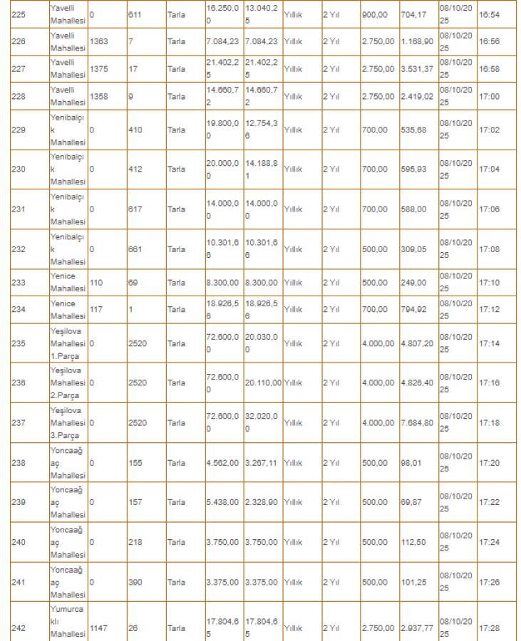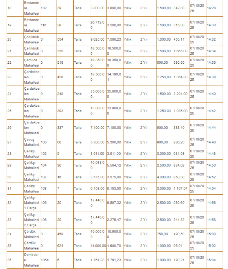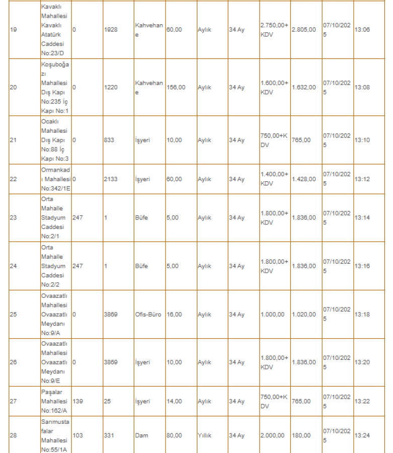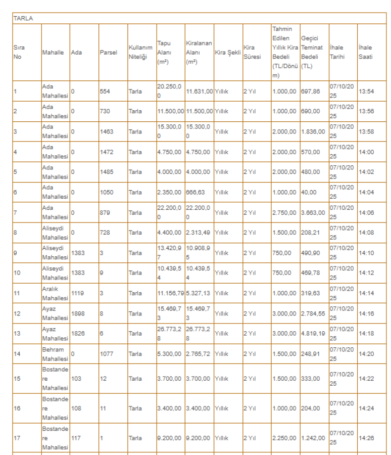 İhaleler, 07-08 Ekim 2025 tarihlerinde gerçekleştirilecek.
