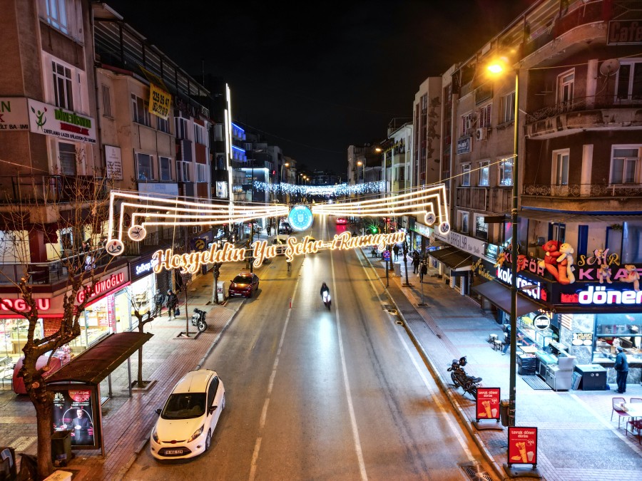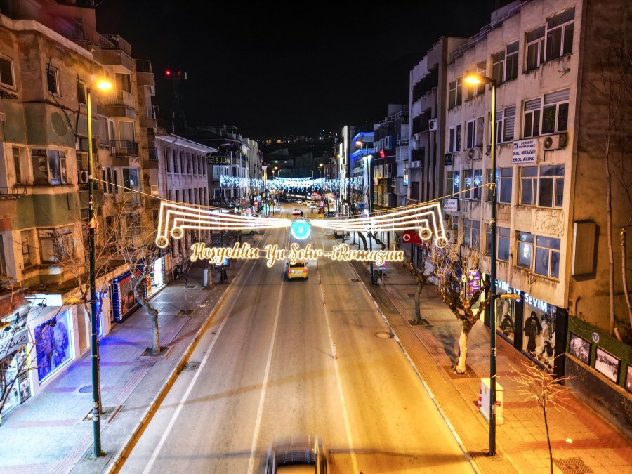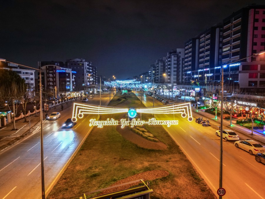 Park ve Bahçeler Dairesi Başkanlığı Kent Estetiği Şube Müdürlüğü tarafından kentin en işlek noktalarına LED teknolojisi ile üretilen Ramazan mahyaları yerleştirildi.