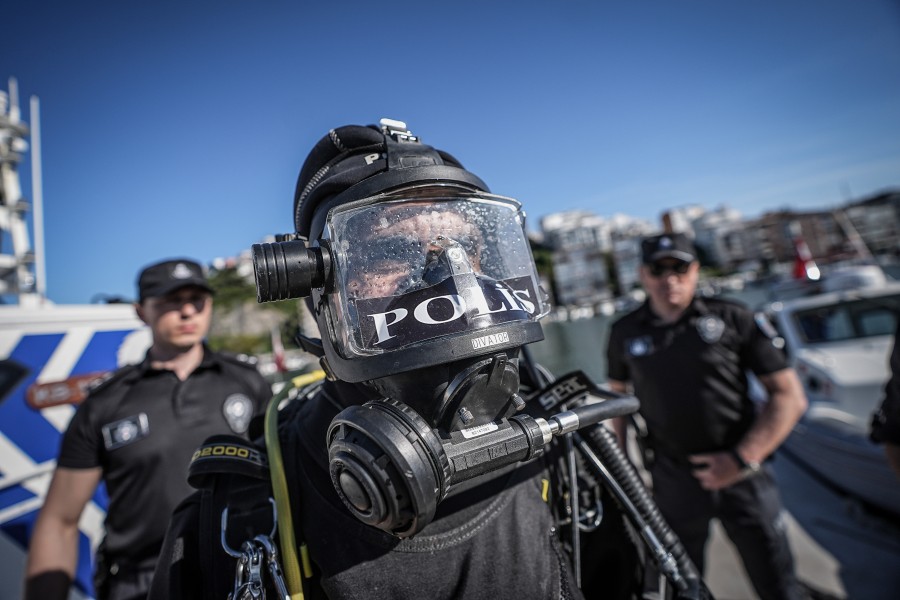 Deniz, göl, dere, akarsu gibi alanlar ile sel ve taşkın vakalarında hayat kurtarmak için fedakarca çalışan deniz polisi, bazen de suya atılan suç aletlerini çıkarabilmek için 42 metreye kadar dalış yapıyor.