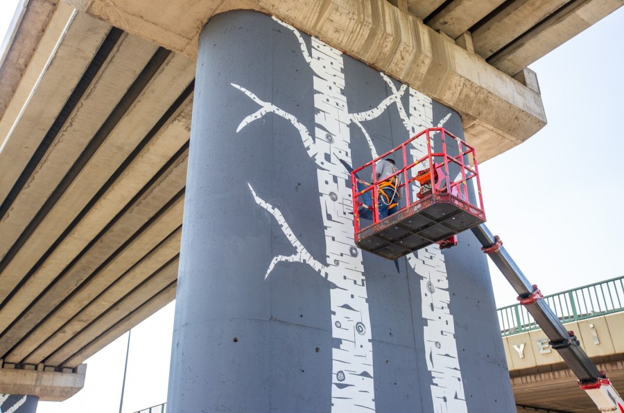 BUSKİ Avrupa Konseyi Bulvarı bağlantı köprülü kavşağı sütunları ise modern kentsel sanat anlayışıyla tasarlanan 'huş ağacı' motifiyle estetik bir görünüme kavuşturuldu. Beş köprü ayağı ve iki duvar üzerine yapılan uygulama ile yoğun trafik akışının yaşandığı bölge görsel açıdan da zenginleştirildi. Şehir merkezinde aktif kullanılan alanları estetik bir görünüme kavuşturan ekipler, vatandaşların günlük yaşamında çevre bilincinin oluşmasını amaçlıyor.