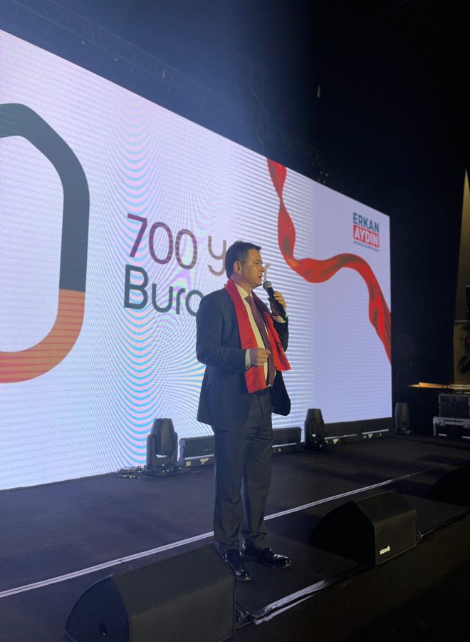 Konuşmasında Bursa'nın tarihsel sürekliliğine de değinen Erkan Aydın, Osman Gazi ve Orhan Gazi'nin mirasına dikkat çekerek, Bursa'nın işgal yıllarında yaşanan acı hatıraları ve Gazi Mustafa Kemal Atatürk'ün Bursa'nın kurtuluşuna verdiği önemi hatırlattı. Bursa'nın 11 Eylül 1922'de işgalden kurtarılmasıyla TBMM kürsüsündeki siyah örtünün kaldırıldığını anımsatan Aydın, bu kentin üç bin yıllık medeniyetler mirasına ev sahipliği yaptığını söyledi.