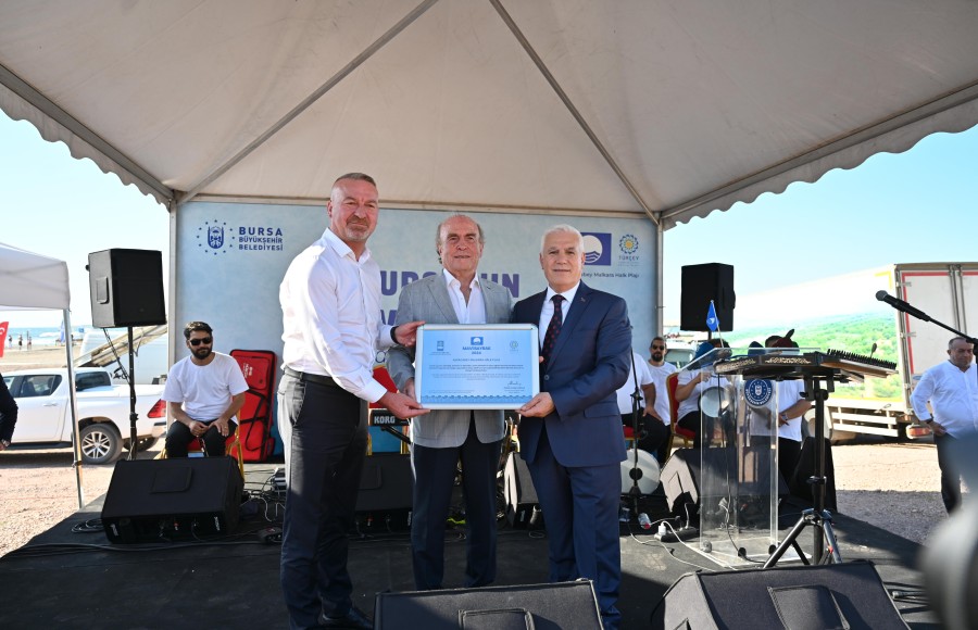 Konuşmaların ardından 2024 Mavi Bayrak Sertifikası, TÜRÇEV Başkanı Ateş tarafından Büyükşehir Belediye Başkanı Mustafa Bozbey ve Karacabey Belediye Başkanı Karabatı'ya teslim edildi. Ardından denizden botla getirilen mavi bayrak alkışlar eşliğinde göndere çekildi.