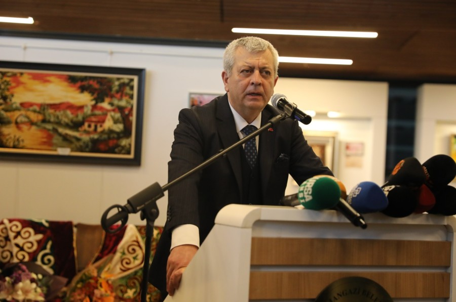 "Sayın Cumhurbaşkanı ortak alfabe konusunda Cengiz Aytmatov'un eserlerini 7 Ekim'de Azerbaycan'a götürdü. Bu önemli bir gelişme. Türk dünyasının ortak bir alfabe oluşturması ve bunun Cengiz Aytmatov'un üzerinden yapılması hem edebiyat dünyası için, hem Türk dünyası için çok önemli ve birleştirici bir gelişme. Biz de Osmangazi Belediyesi olarak bu çalışmalara katkımız olsun amacıyla yola çıktık. Değerli Elif hanım ve Ayşe hocamız bize destek verdi diyeceğim ama destekten daha ötesine gitti, en az bizim kadar sahiplendiler. Onlara teşekkür ediyorum. Cengiz Aytmatov benim için önemli çünkü ülkesinin Paris Büyükelçisi olduğu dönemde Ankara'da bir buluşmamız oldu. 'Benim tek idealim, kitaplarım üzerinden Türk dünyasını birleştirmek' dedi. Şimdi bu ideale, bir adım daha öndeyiz. Aytmatov'un Türk dünyasının bir hafızası olduğunu düşünüyoruz ama ben daha ötesinde insanlığın bir hafızası olduğunu düşünüyorum. Çünkü, sevginin ve aşkın sadece bir duygu olmadığını, ayrıca bir emek ve fedakarlık olduğunu özellikle bizim kuşağımız ve bütün insanlık onun kitaplarından öğrendik. Biz de insanlığı birleştiren bir yazarı yeniden okumayı ve anlamayı, yeniden sergide buluşturmayı kendimize görev edindik."