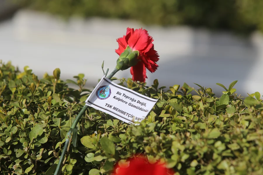 Protokol üyeleri tarafından şehit mezarları tek tek ziyaret edilerek karanfiller bırakıldı. Kur'an-ı Kerim tilaveti ve yapılan dualar sırasında duygusal anlar yaşanırken, program kapsamında Şehitlik Defteri de imzalandı.