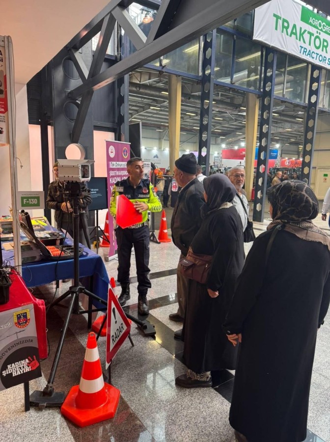 Bursa İl Jandarma Komutanlığı'na bağlı Trafik Şube Müdürlüğü ve Trafik Jandarma Timleri, Bursa Tarım ve Hayvancılık Fuarı'na katılarak, fuar ziyaretçilerine yönelik trafik güvenliği eğitimi verdi.
