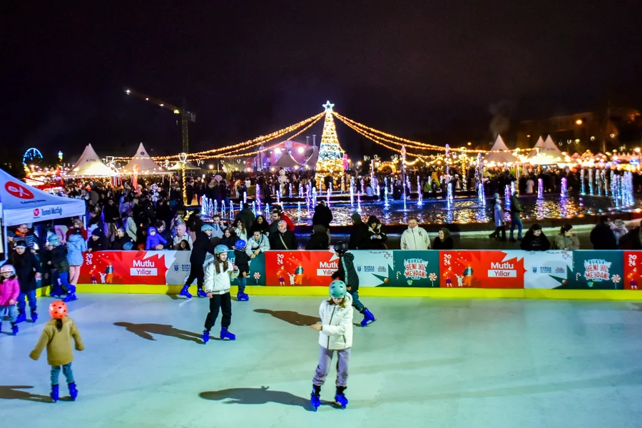 Bursa Büyükşehir Belediyesi tarafından oluşturulan 'Bursa Yeni Yıl Meydanı', konserlerden çocuk etkinliklerine, açık hava buz pateni pistinden sokak lezzetlerine uzanan renkli etkinlik alanlarıyla yeni yıl coşkusunu ikiye katlıyor.