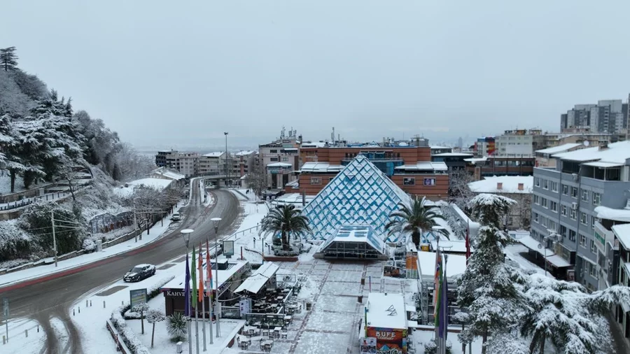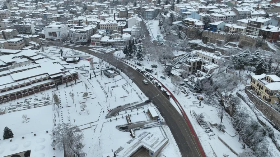 Bursa yeni yılın ilk gününe karla uyandı. Her yer bembeyaz olurken, şehrin simge noktaları dron ile görüntülendi.
