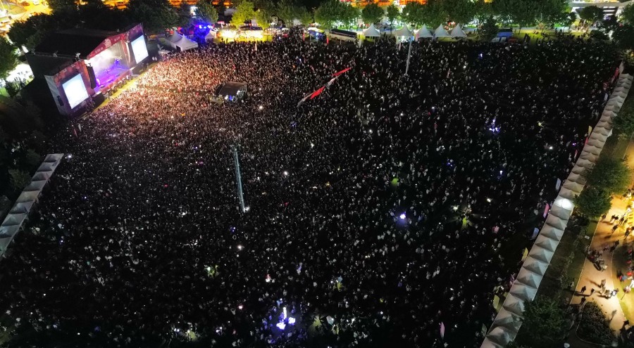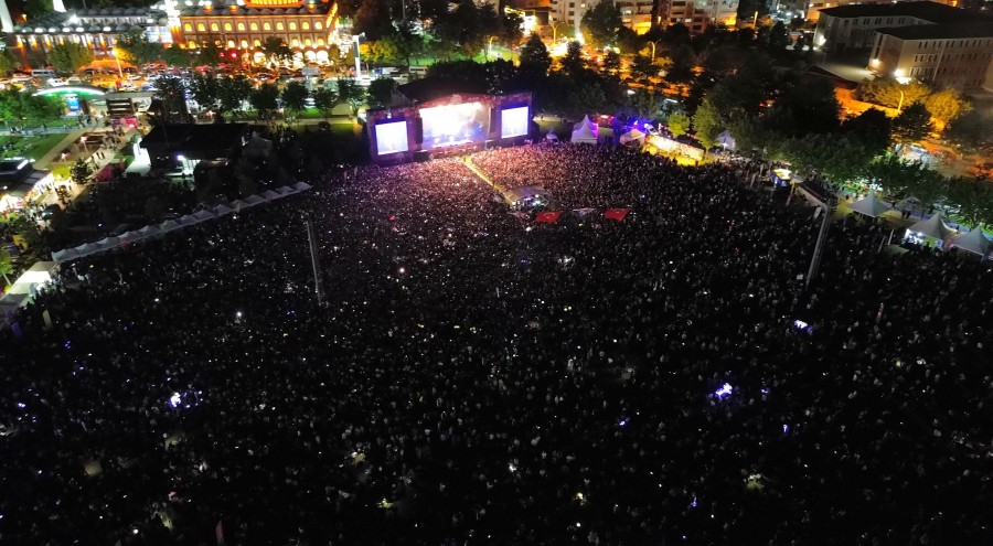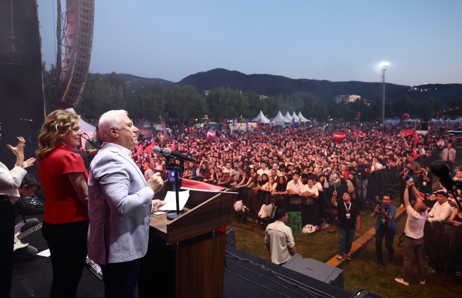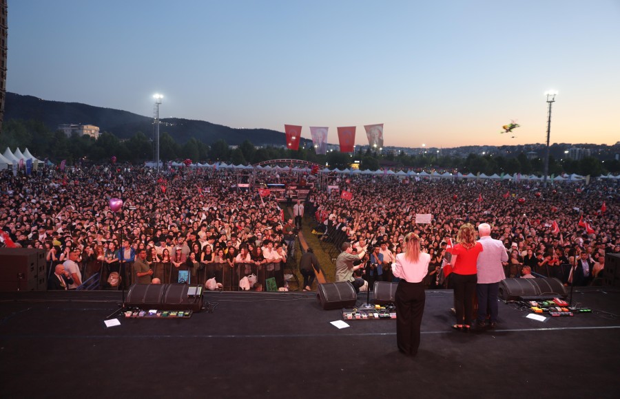Konuşmanın ardından Başkan Mustafa Bozbey ve eşi Seden Bozbey, ellerindeki Türk bayraklarıyla 'İzmir Marşı' eşliğinde gençleri selamladı. Daha sonra Mor ve Ötesi Grubu sahne alarak sevilen eserlerini Bursalılar için seslendirdi. Şarkılara hep bir ağızdan eşlik eden binlerce genç, doyasıya eğlendi. 19 Mayıs Atatürk'ü Anma, Gençlik ve Spor Bayramı'nda Bursa'da olmanın çok güzel bir duygu olduğunu söyleyen Mor ve Ötesi Grubu üyesi Harun Tekin, kendilerini davet eden Bursa Büyükşehir Belediyesi'ne teşekkür etti.