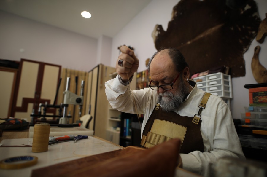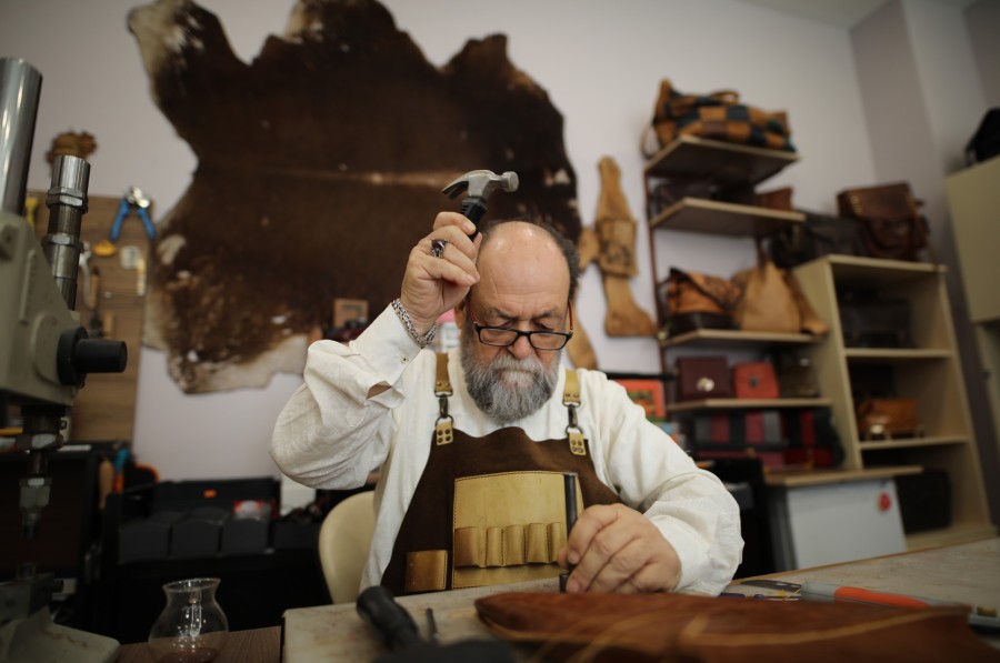 Kurman, deri üzerine çalışmalar gerçekleştirirken; Çobanoğlu ise seramik ürünler alanında el emeği ürünlerini atölyesinde sergiliyor.