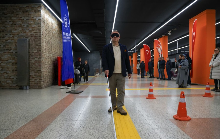 Bursa Büyükşehir Belediyesi Gençlik Kulübü ve Engelli Hizmetleri Şube Müdürlüğü'nün koordinasyonunda, BURULAŞ'ın desteğiyle BursaRay Merinos İstasyonu'nda empati parkuru kuruldu.