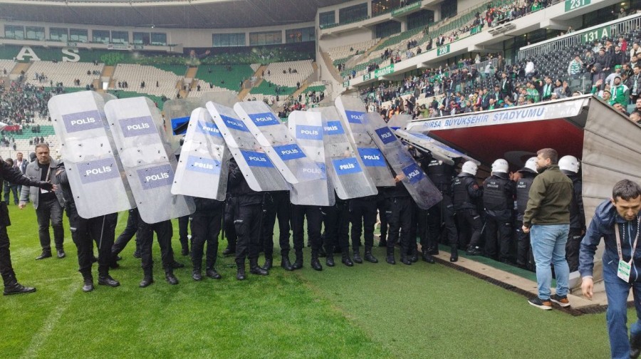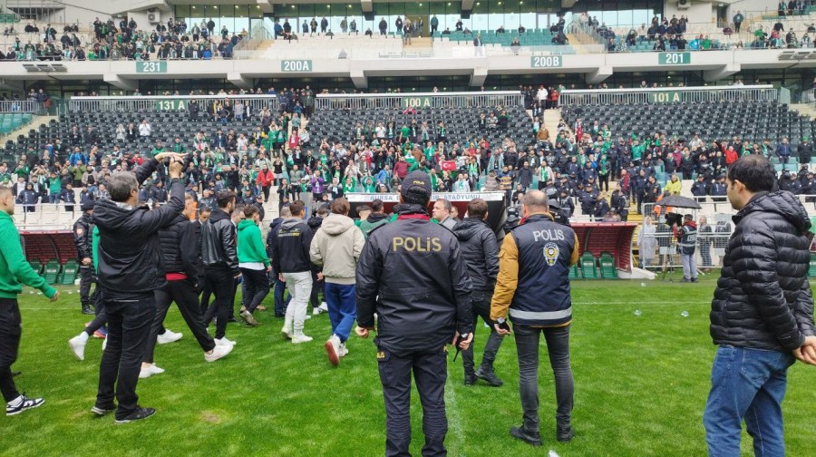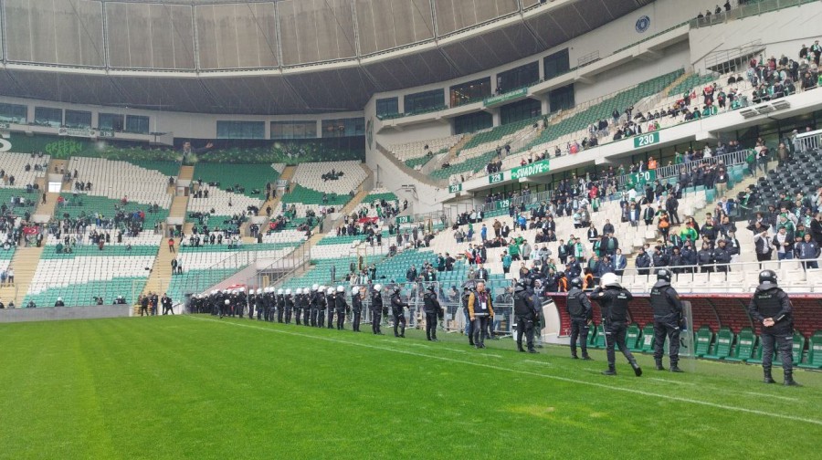 Amedsporlu futbolcular, zemini incelemek için sahaya çıktığında, tribünlerdeki Bursaspor taraftarlarının protestosuyla karşılandı. Amedsporlu bazı futbolcuların da taraftarlara karşılık vermesiyle tansiyon yükseldi. Bunun üzerine Bursasporlu futbolcular da sahaya çıktı. İki takım futbolcuları arasında yaşanan arbedeye çevik kuvvet polisleri müdahale etti. Polisin müdahalesiyle saha içerisindeki arbede sonlandırılırken, her iki takımın oyuncuları soyunma odasına geri döndü. Amedsporlu futbolcuların soyunma odasına girişi sırasında tribünlerden pet şişe atıldı.