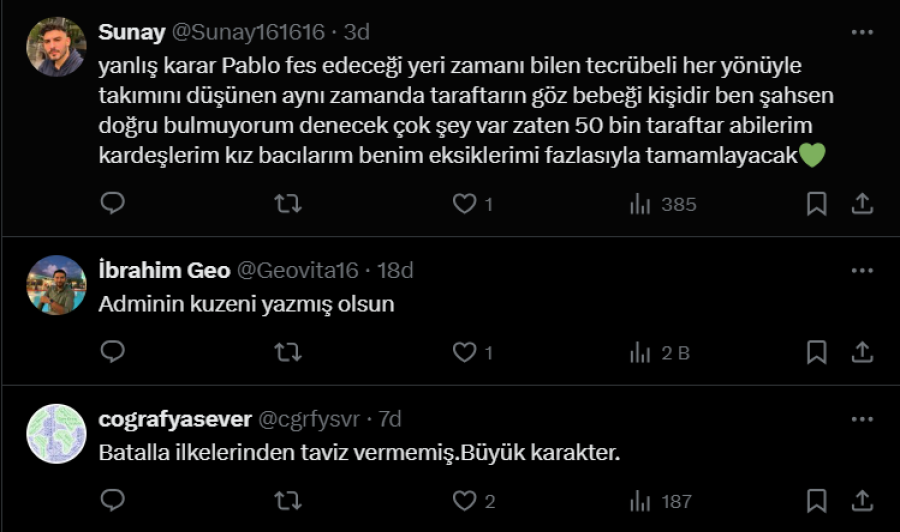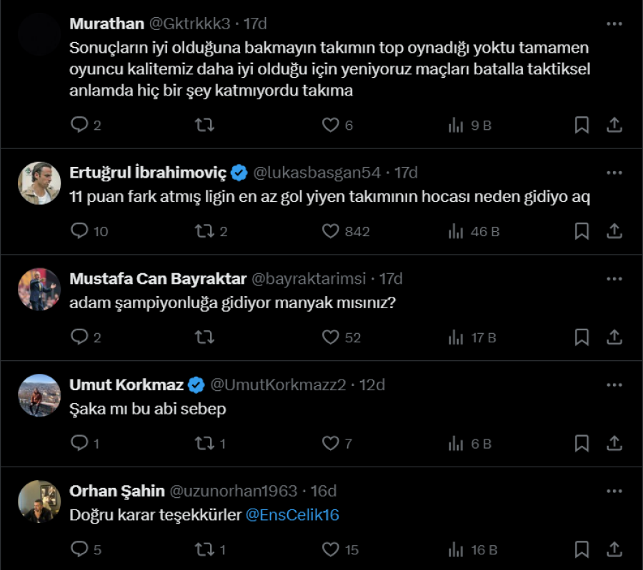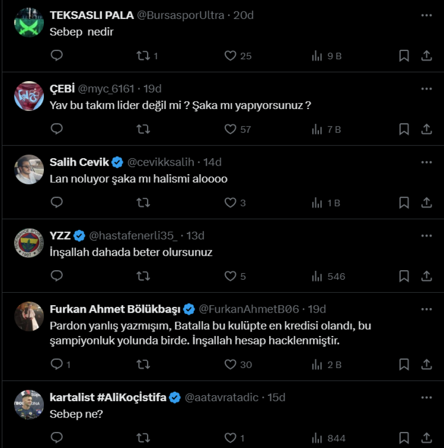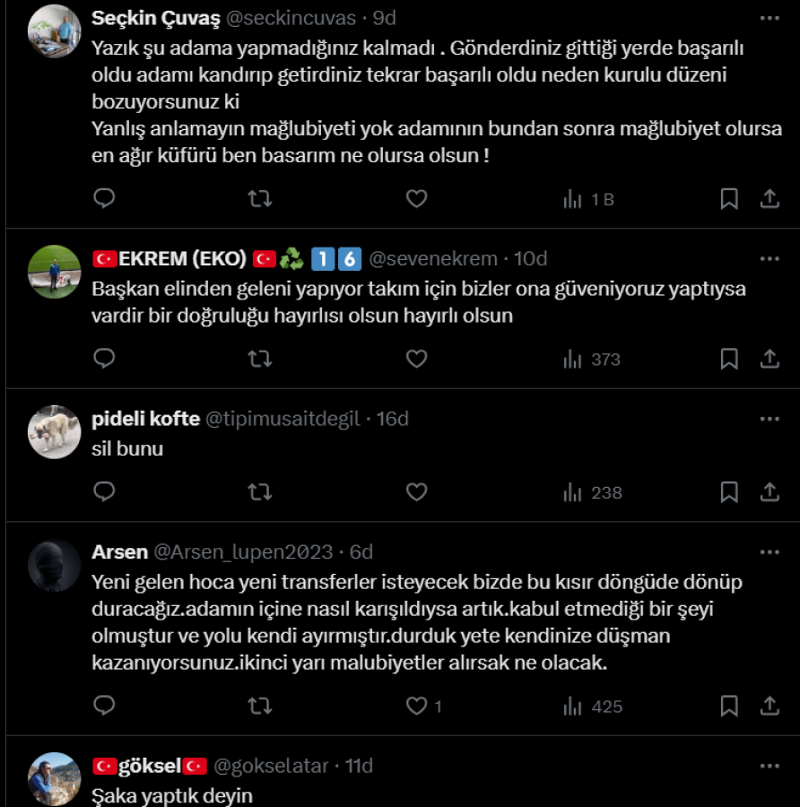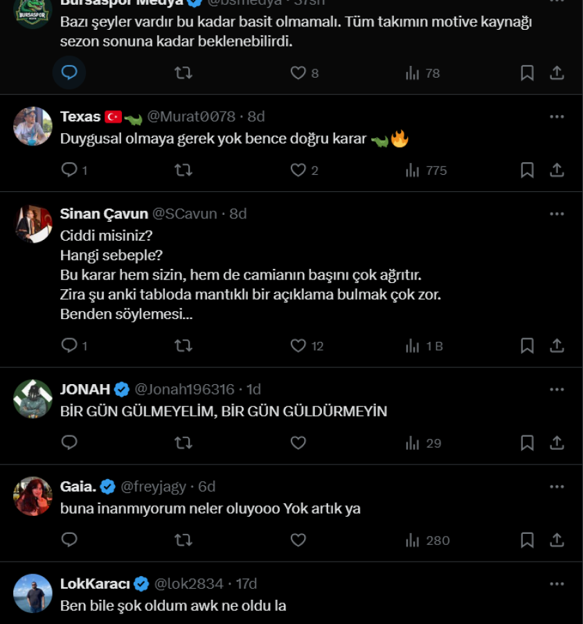 Öte yandan taraftardan yaşanan sürpriz ayrılığa destek veren de oldu tepki gösteren de.