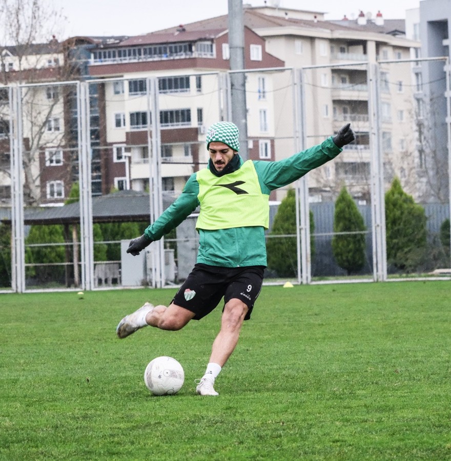 Bursaspor'da Yeni Mersin İdman Yurdu maçı hazırlıkları sürüyor. Soğuk havada antrenmanlarını sürdüren yeşil-beyazlılar, sınırlandırılmış alan oyunları çalışması gerçekleştirdi.