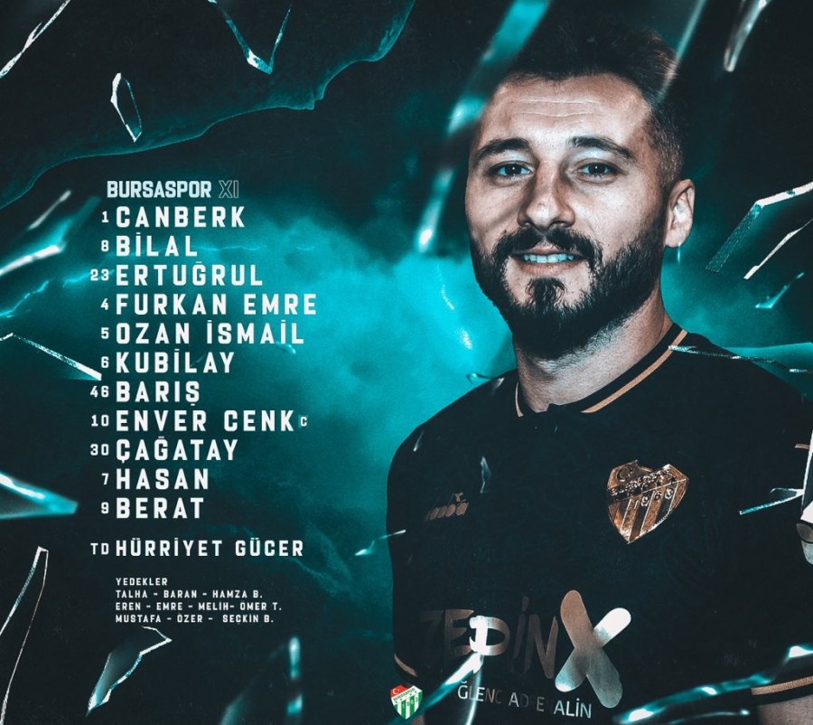Bursaspor: Canberk Yurdakul xx, Furkan Emre Ünver xxx, Ertuğrul Kurtuluş xxx, Ozan İsmail Koç xxx (Melih Sağlam dk. 76 xxx), Kubilay Sönmez xxx, Hasan Ayaroğlu xxx, Bilal Güney xxx (Hamza Baran Arıkan dk. 64 xx), Enver Cenk Şahin xxx, Barış Dalkıran xxx (Ömer Görgüc dk. 69 xx), Berat Altındiş xxx (Emre Tepegöz dk. 69 xx), Çağatay Yılmaz xxx (Eren Tunalı dk. 76 x)