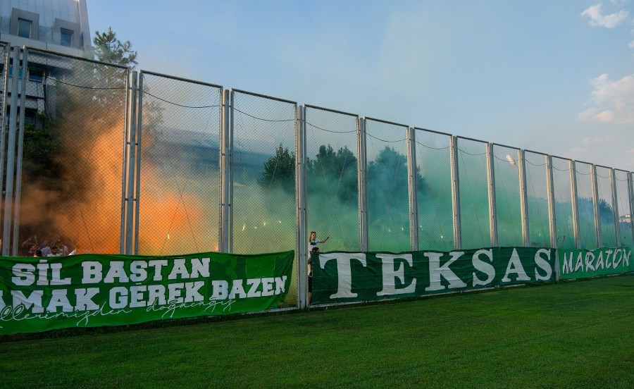 Antrenmana 2 bine yakın yeşil-beyazlı taraftar katılırken Bursaspor Başkanı Enes Çelik ve yönetimi de takip etti.