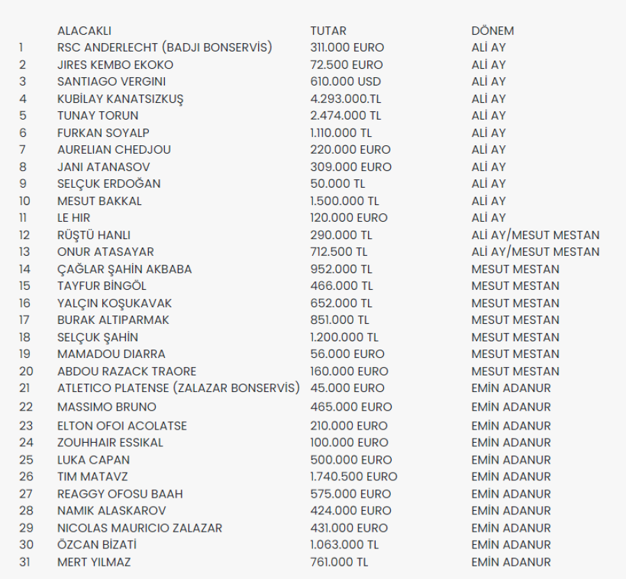 Kulübümüzün kış transfer döneminde FIFA'dan aldığı yasak sona erecek ancak transfer tahtasının açılması için ödemesi gereken toplam rakam 203.209.735 TL'dir.