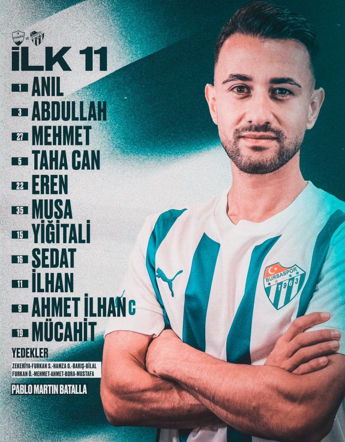 Deplasmanda oynayacak Bursaspor'un ilk 11'i belli oldu.