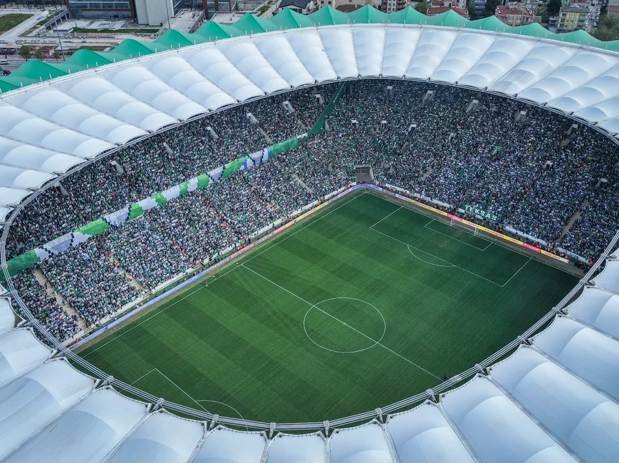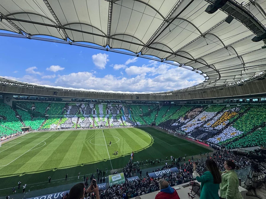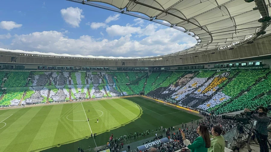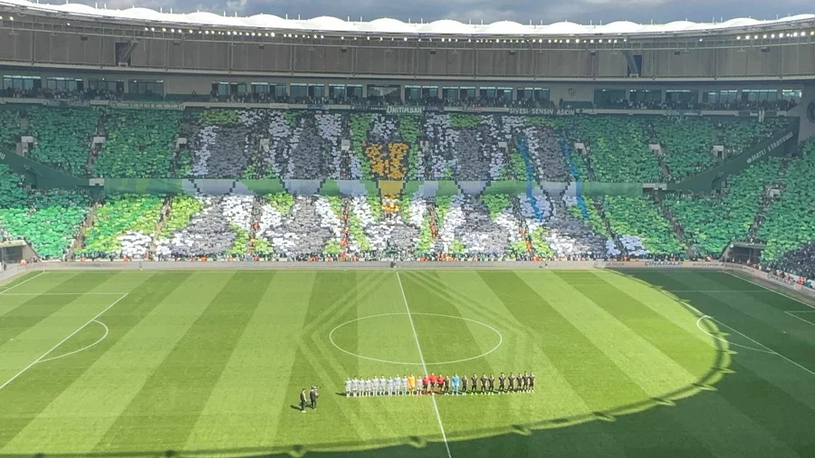Kulüp Başkanı Enes Çelik'in yer aldığı koreografide, Bursaspor'un Süper Lig, 1. Lig, 2. Lig ve 3. Lig'de kazandığı şampiyonluk kupaları resmedildi.
