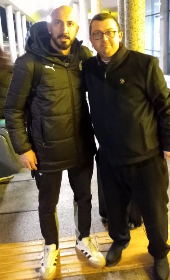 Bursa Yenişehir Havaalanına gelen futbolcular taraftarlar bağrına basarak hatıra fotoğrafı çektirdi.
