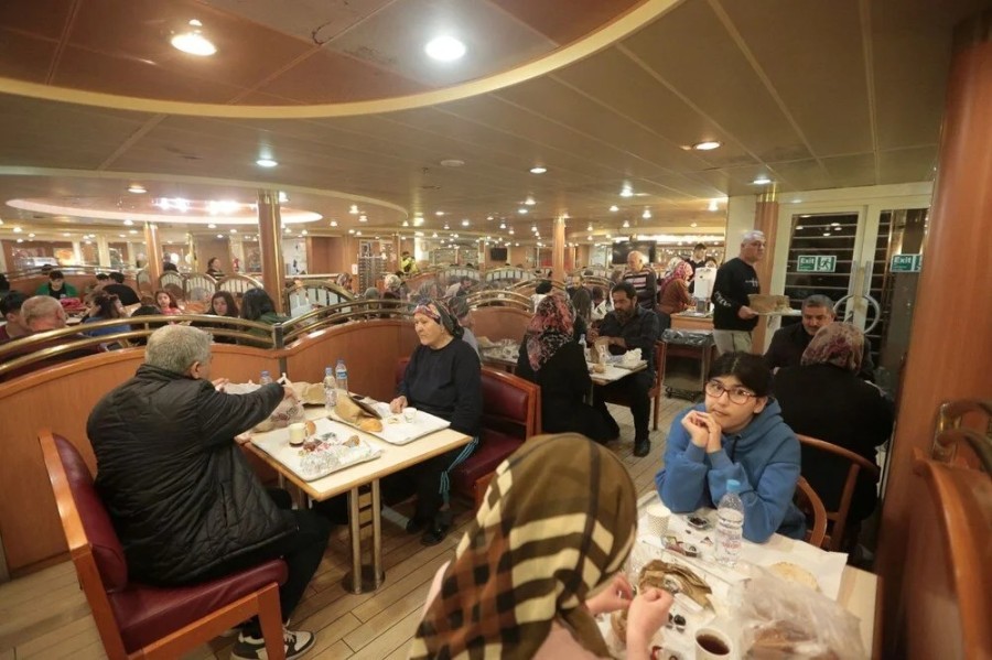 İskenderun Limanı'nda demirli bulunan MSC AURELIA gemisinde ağırlanan depremzedeler de ilk sahuru bu gemide gerçekleştirdi.
