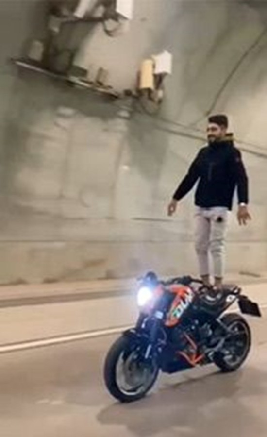 İstanbul'da Çamlıca Tüneli'nde iki motosiklet sürücüsünün seyir halinde tehlikeli hareketler yaptığı anlar, arkadaşları tarafından cep telefonu kamerasıyla kaydedildi.