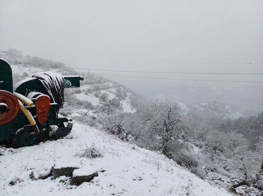 Çan ilçesine bağlı Dondurma ve Halilağa köyleri beyaz örtüyle kaplanırken, ortaya adeta kartpostallık görüntüler çıktı.