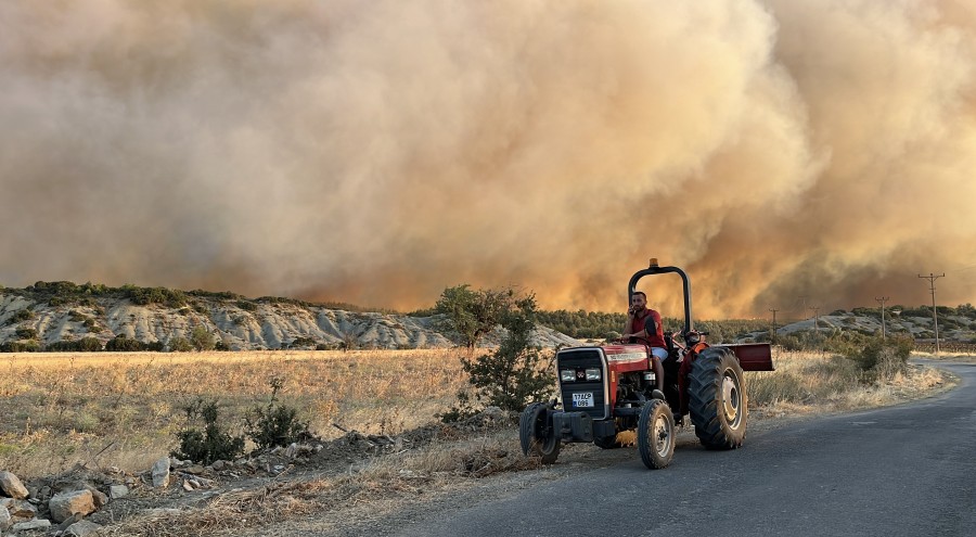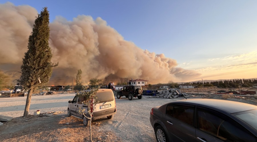 Yangın rüzgarın etkisiyle geniş bir alana yayıldı.
